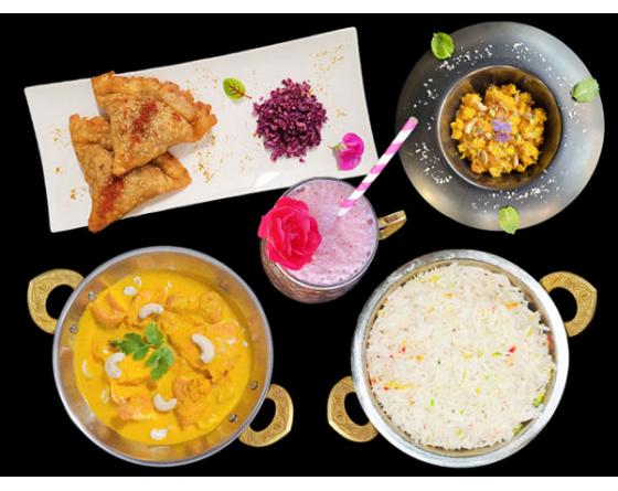 Plat : butter chicken, murg tika, goshatte shahi ou kima mirchy
